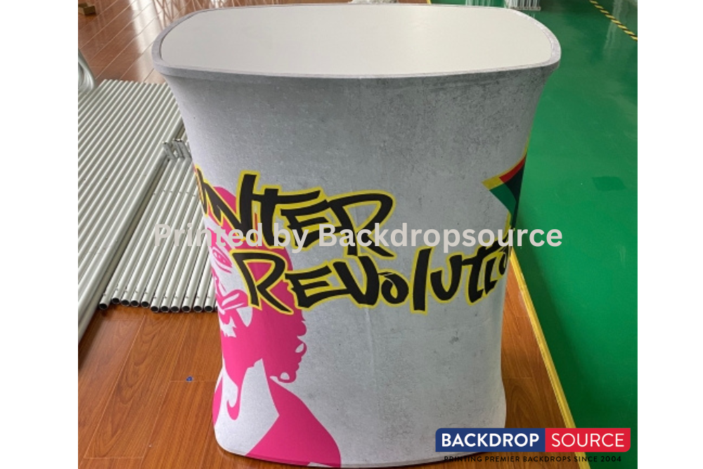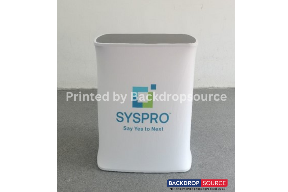 Rectangular fabric counters are ideal for showrooms, showrooms or point of sale displays, these elegant oval shaped counters can be completely wrapped in your own digitally printed design. This rectangular display provides the perfect base for welcoming and interacting with potential customers. Easy assembly without the need for tools with a sturdy, wipeable work surface.