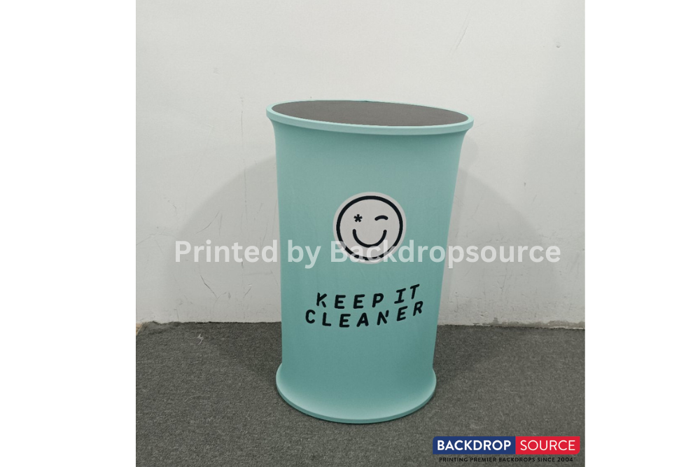 Nos comptoirs ovales en tissu sont idéaux pour les espaces d'exposition, les salles d'exposition ou les points de vente. Ces comptoirs élégants de forme ovale peuvent être entièrement enveloppés dans votre propre design imprimé numériquement. Ce présentoir ovale constitue la base parfaite pour accueillir et interagir avec les clients potentiels. Facile à assembler sans outils, il est doté d'une surface de travail solide et lavable. Ce présentoir ovale est également doté d'un système de cadre compact en aluminium Clever qui peut être rangé dans un sac de transport pratique.